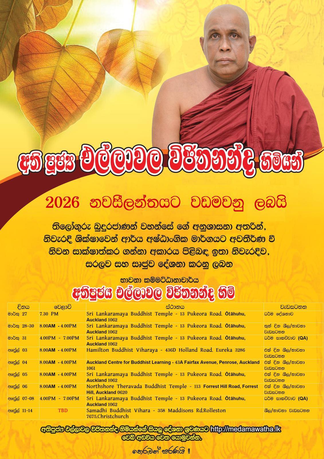 සෑම සෙනසුරාදාවකම ශ්රීලංකාවේ වේලාවන් සවස 3.00 සිට 3.30 දක්වා පුජ්යපාද එල්ලාවල විජිතනන්ද හිමියන්ගේ මගපෙන්වීම යටතේ ළමයින් සදහාම පවත්වනු ලබන භාවනා වැඩසටහන.